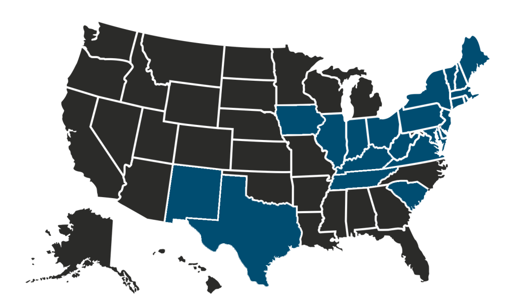 We provide nation-wide service for our depot-services. For on-site services, we primarily service the highlighted states.